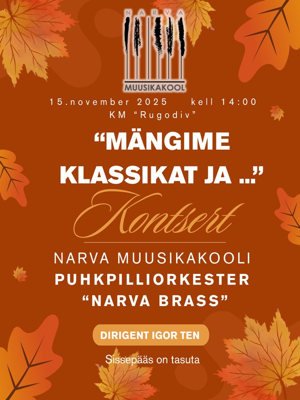 15 ноября в KM Rugodiv состоится концерт духового оркестр Нарвской музыкальной