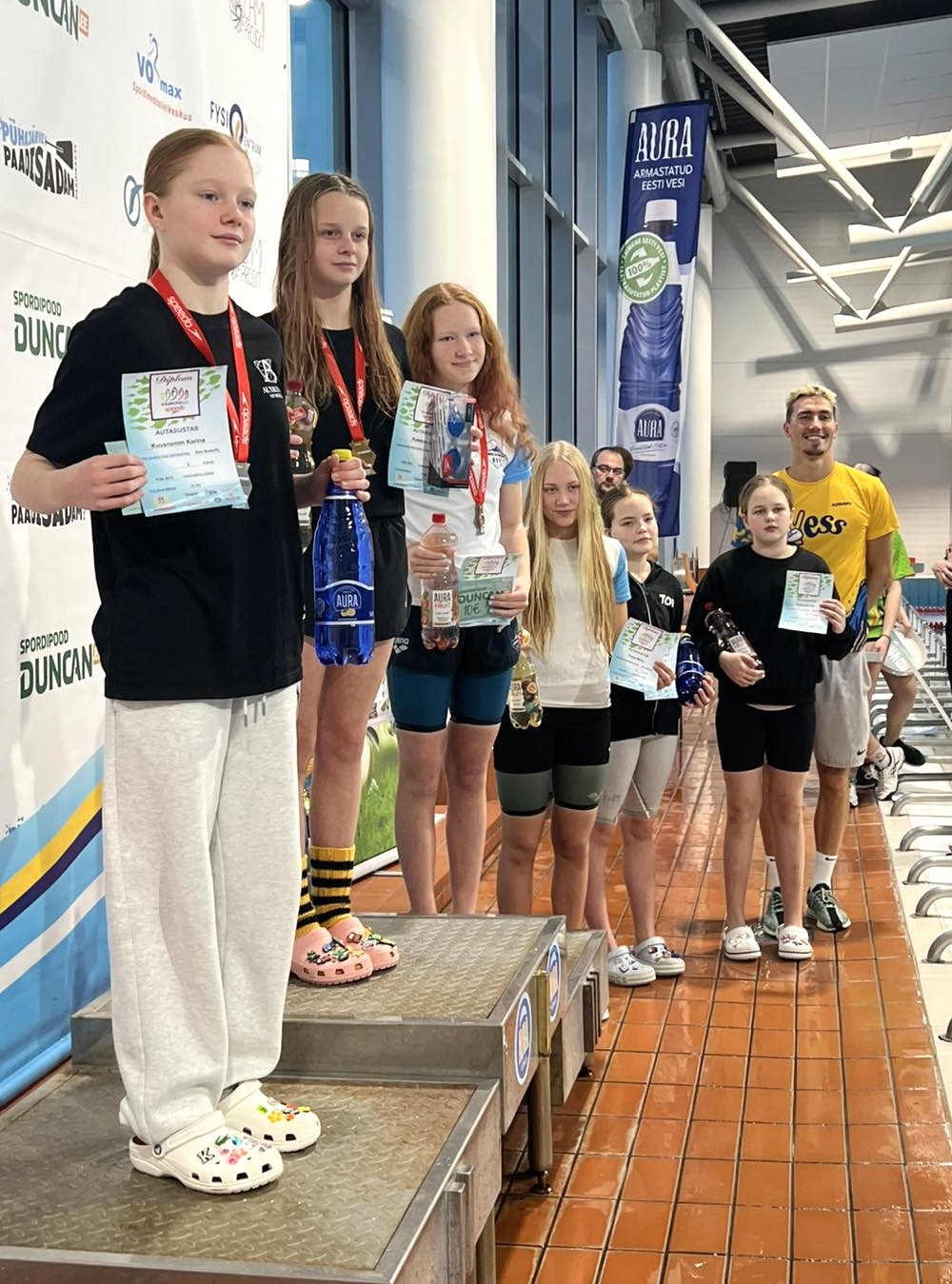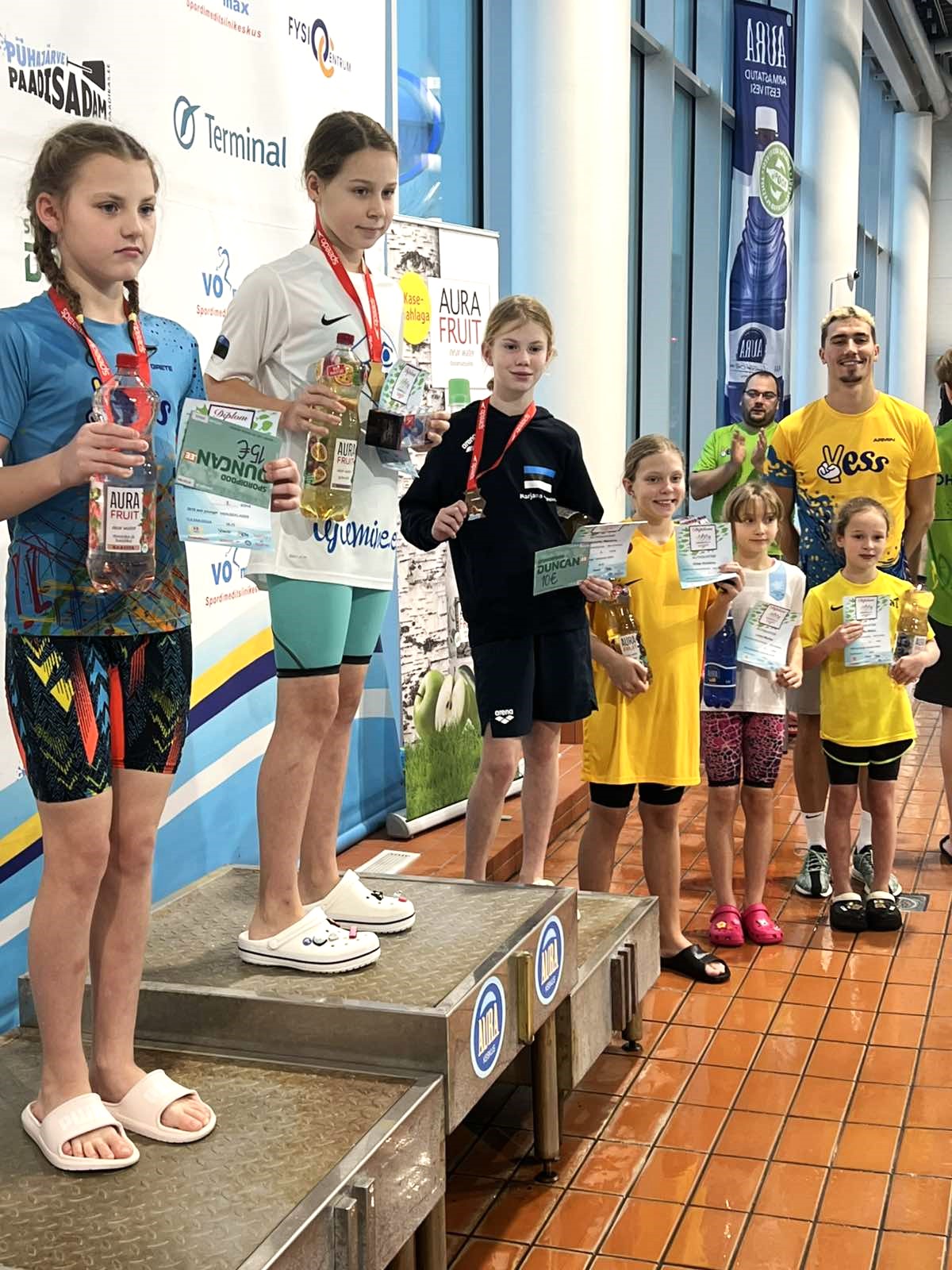 Нарвитянка Марьяна Макаренко (2016 г.р.) на прошедших соревнованиях завоевала бронзовую медаль на дистанции 50 метров вольным стилем (время 35.35). Учащаяся нарвской спортивной школы Energia Аделина Элкснин (2014 г.р.) стала обладателем бронзовой медали на дистанции 50 метров брассом, показав время 43.18.