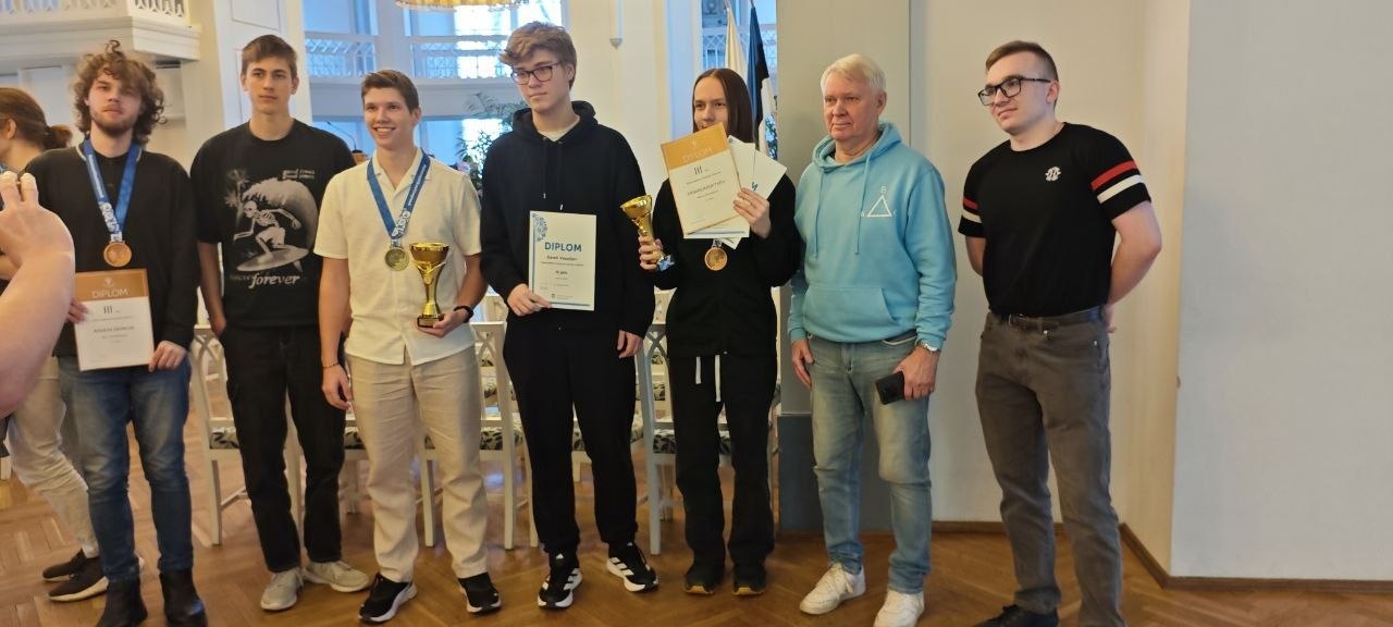 21 и 22 марта в Тарту учащиеся 9-12 классов состязались в мастерстве на заключительном, республиканском этапе ежегодной олимпиады во славу «царицы наук». Нарву представляли пятеро гимназистов: Иван Дукач, Арсений Деркун и Алексей Помазнев из Keeltelütseum (педагог Наталья Тарасова), а также ученики Натальи Емельяновой Касьян Крупцев и Савелий Васильев из NARG. Результаты впечатляющие: первое место и два третьих, кубки лучшим математикам в младшей и старшей группе и приглашения на отборочный тур для участия в международном этапе. Группу сопровождал гуру математических наук Александр Сутырин, а на месте ребят встретили «бывалые» — ныне студенты университетов, а в недавнем прошлом успешные нарвские «олимпиадники» Алексей Ганюков и Бронислав Шатиль. Теперь они представляют принимающую сторону, наставляя участников.