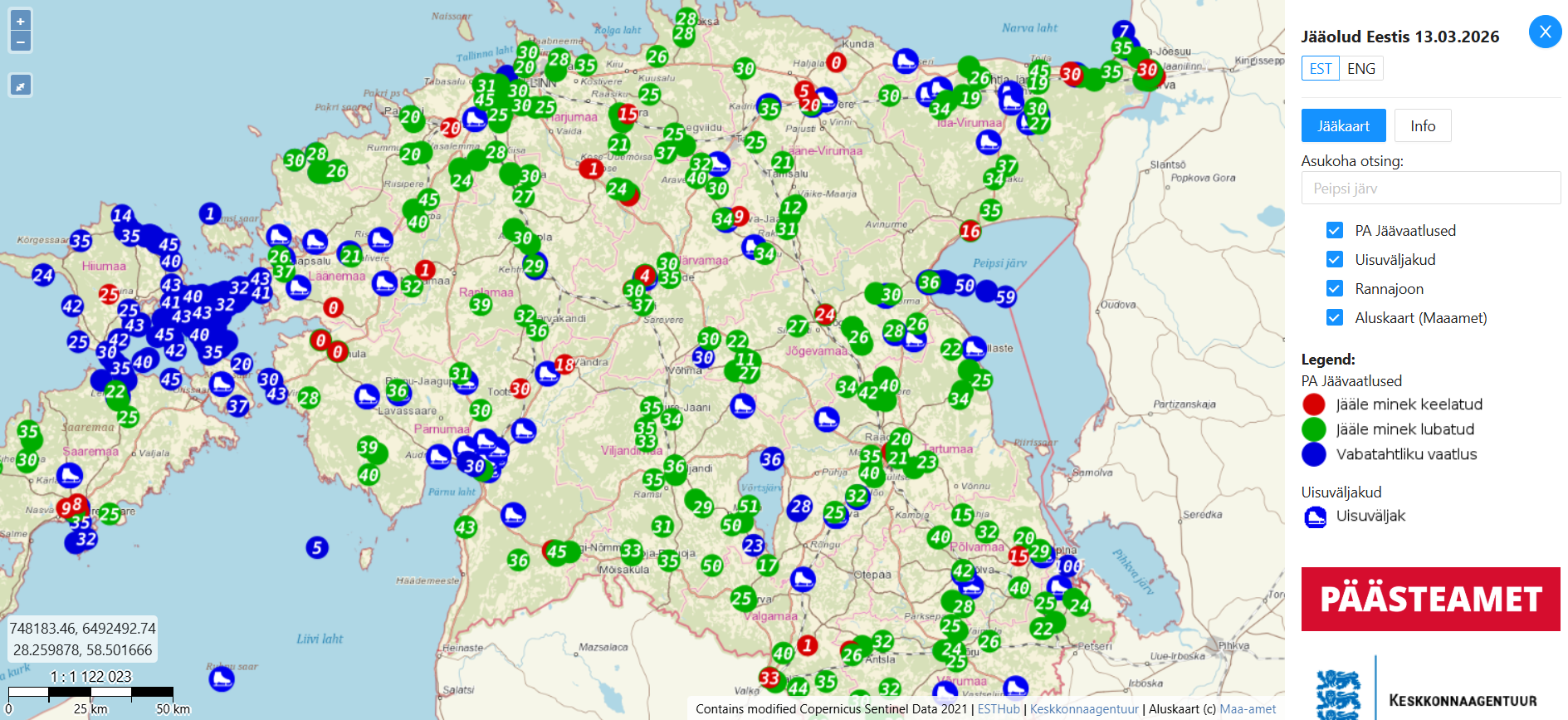 В Эстонии есть несколько официальных источников для отслеживания ледовых условий: